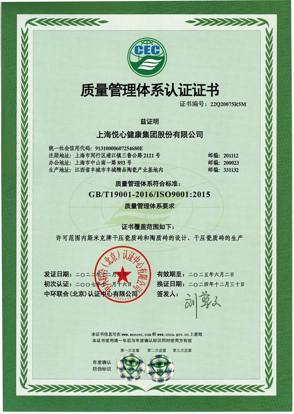 Aug  China Association for Quality Inspection’s “Product of Reliable Quality” certification, “National Ceramics Brof Distinction Superior Quality” certification, “National Ceramics Company of Distinction Superior Quality” certification