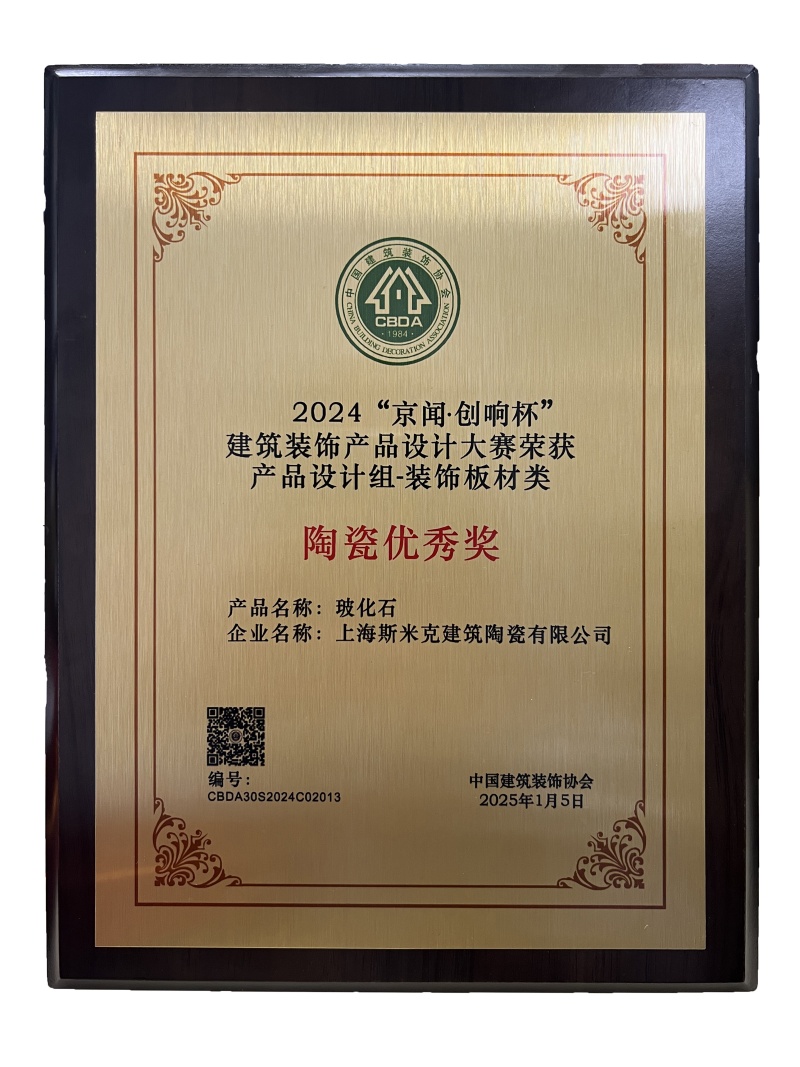 • “京闻·创响杯”建筑装饰产品设计大赛荣获产品设计组装饰板材类-陶瓷优秀奖