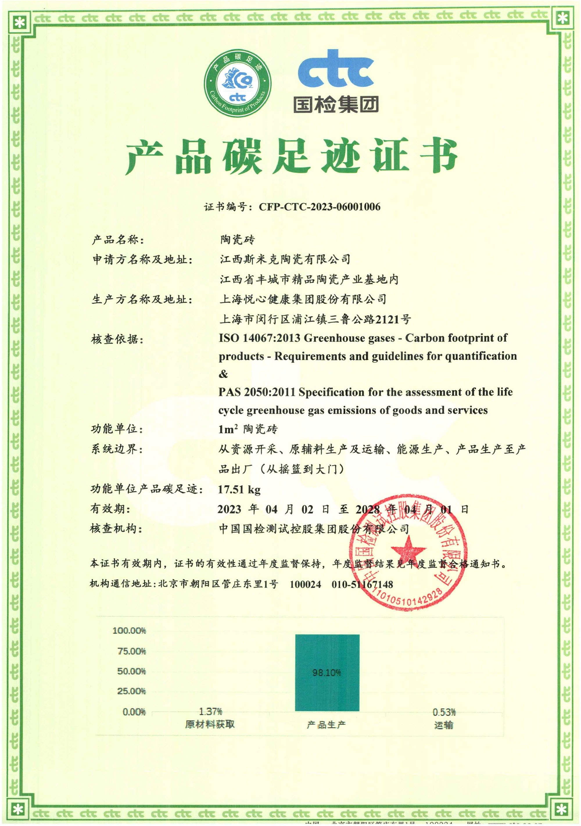 8月   获中国质量检验协会 “全国质量检验稳定合格产品” 、“全国建筑陶瓷行业质量领先品牌”以及“全国建筑陶瓷行业质量领先企业” (2022/8/5)